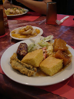 A városnézés után egy cajun étterembe visznek minket, ahol kicsi aligátor (sajnos kitömve) pihen a sarokban, én pedig felfedezem magamnak a jam-gyökeret, ami valamilyen édesgyökér, és mind magában, mind köretnek igen kiváló.